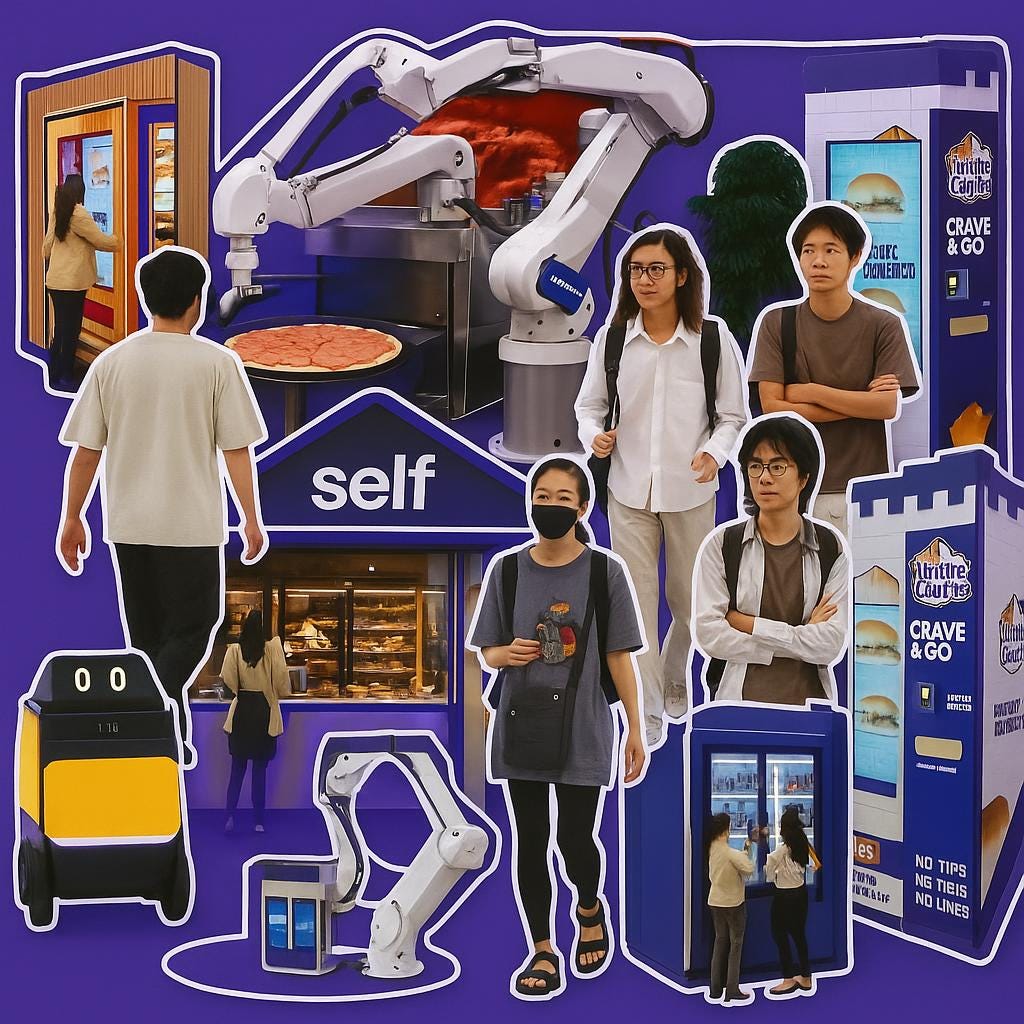 High-traffic environments such as airports and train stations are becoming testing grounds for automated commerce - from Rewe To Go’s autonomous store at Frankfurt Airport to robotic restaurants and vending concepts from brands like White Castle and Evolve Eats.