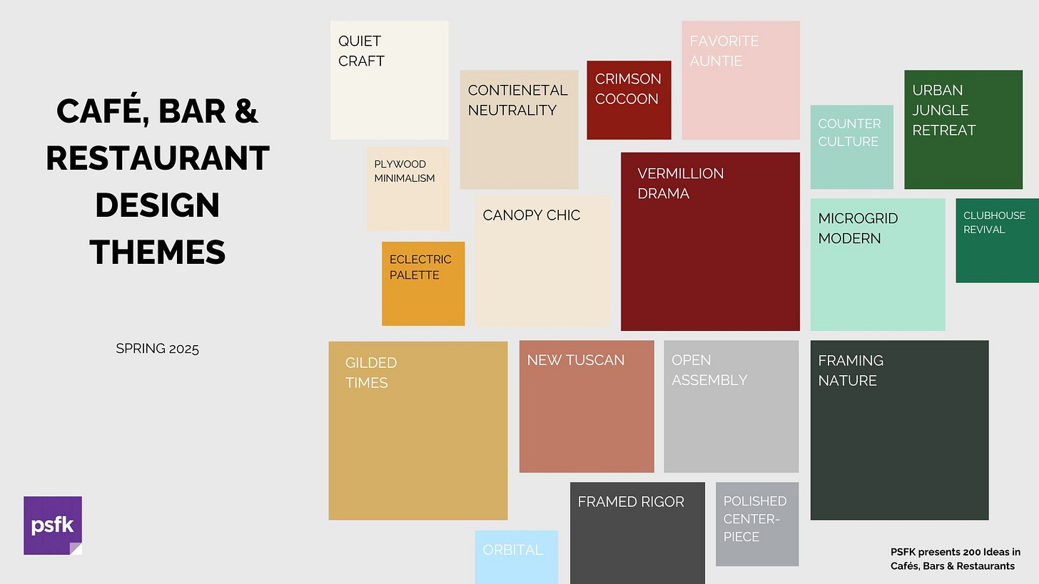 Our latest report, '200 Ideas in Cafes, Bars, and Restaurants,' identifies the most compelling design trends shaping the hospitality landscape, moving beyond generic AI-generated lists to explore deeply inspiring spaces and authentic design innovations. At PSFK, we believe genuine inspiration arises from recognizing original creativity and nuanced aesthetics, not predictable buzzwords or AI-generated clichés. After a study of hundreds of new restaurant and bar openings since June 1, 2024, this comprehensive, 450-page report captures thoughtfully curated, innovative design ideas that illuminate meaningful shifts in hospitality environments and consumer experiences.